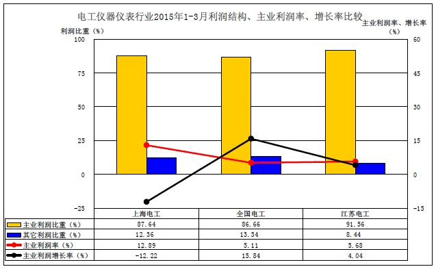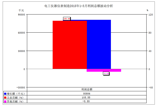 圖2、全電工儀器儀表業(yè)20151-3月主業(yè)利潤(rùn)波