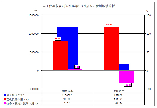 圖3、全電工儀器儀表業(yè)20151-3月本、費(fèi)用波