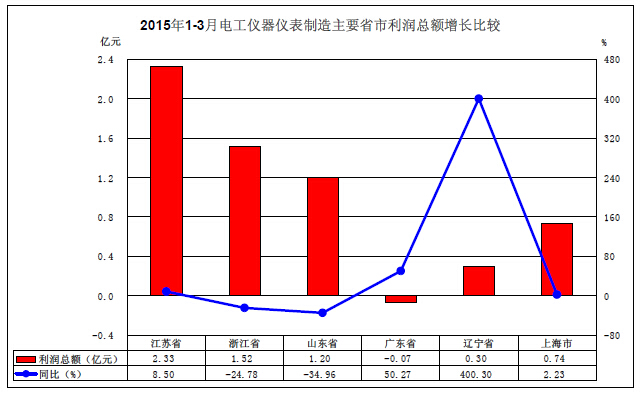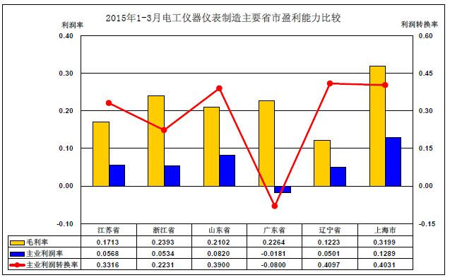 3、20151-3月電工儀器儀表業(yè)主省市盈利力比較-儀表廠家