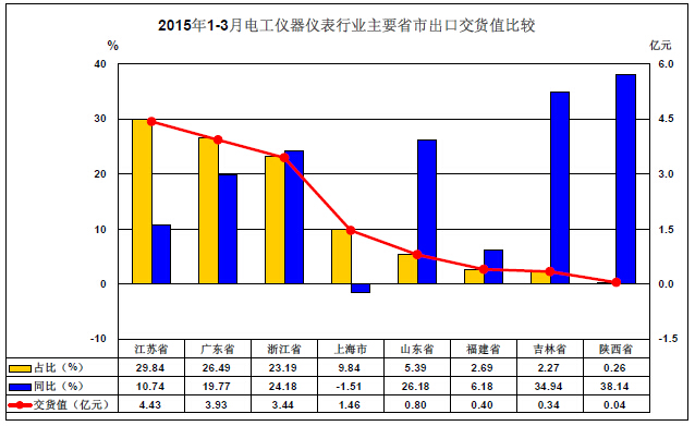 4、20151-3月電工儀器儀表業(yè)主省市口交貨值比較