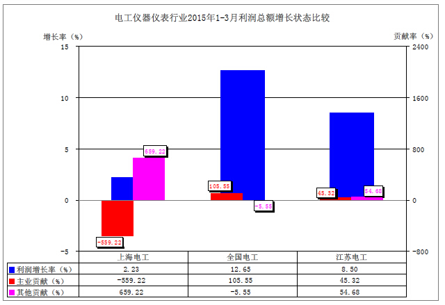 2、20151-3月電工儀器儀表業(yè)主省市利潤(rùn)額增比較