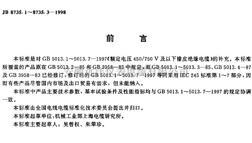 橡套軟電纜執行標準-JB8735.2”的內容。屬于