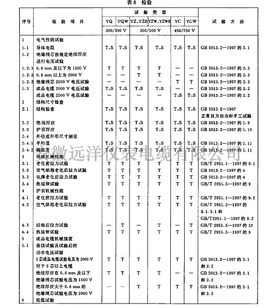 YQ/YZ/YZB/YC型電纜的護套應是代號為SE3的橡皮混合物。YQW/YZW/YZWB/YCW型電纜的護套應是代號為SE4的橡皮混合物。雙層護套的內層代號為SE3的橡皮混合物,外層為代號為SE4的橡皮混合物。
