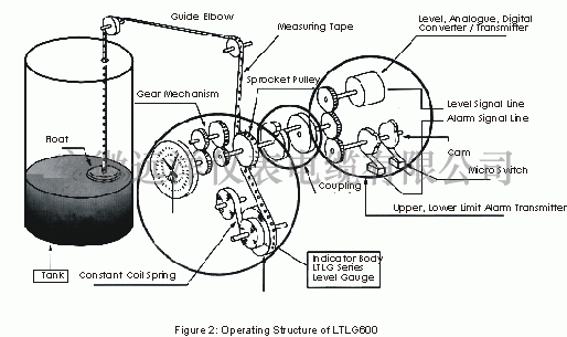 這個運動的浮動是點尺度傳播板(或計數器)齒輪機構。圖2。如果需要遠距離指示,機械測量轉換為4 - 20毫安輸出信號的電位計。